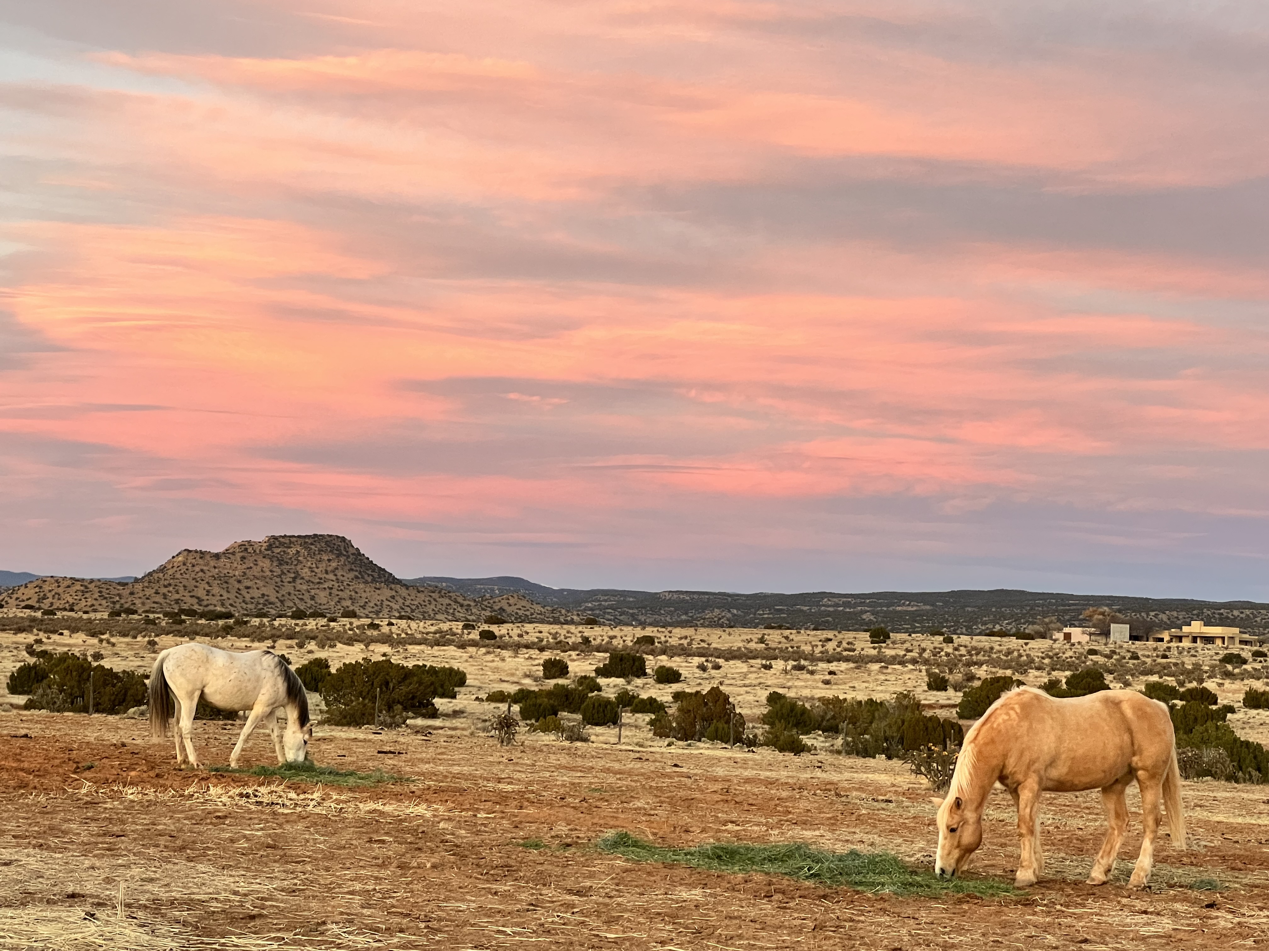 We’ll be staying at a scenic ranch retreat near Santa Fe, surrounded by sweeping desert landscapes, wide-open skies, and the quiet beauty of northern New Mexico. Each room offers warm, inviting comfort with thoughtful details that reflect the spirit of the land. Every meal is crafted with care using fresh, locally sourced ingredients, celebrating the flavors and traditions of the region. Enjoy guided hikes through winding arroyos and high-desert trails, take part in a meaningful equine experience with the ranch horses, or unwind by the fire as the sun sets and the Milky Way lights up the night sky.